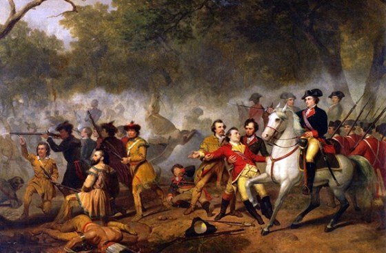 Braddock and his troops would not make it to Fort Duquesne. After crossing the Monongahela on July 9th 1755, the front of the train encountered a well camouflaged force of Native Americans and French soldiers. A party of some 300 – 600 Indians and around 40 French colonial troops came down the path and attacked the advance party of Lieutenant Colonel Gage and three companies of foot. Firing broke out and the Indians fanned out down the flanks of the army in a horse shoe style attack. Troops began to retreat, clashing up against the troops that were advancing causing a mass of mayhem which the native, French allies continued to fire into. The confusion caused British troops to fire on each other causing a majority of the deaths.