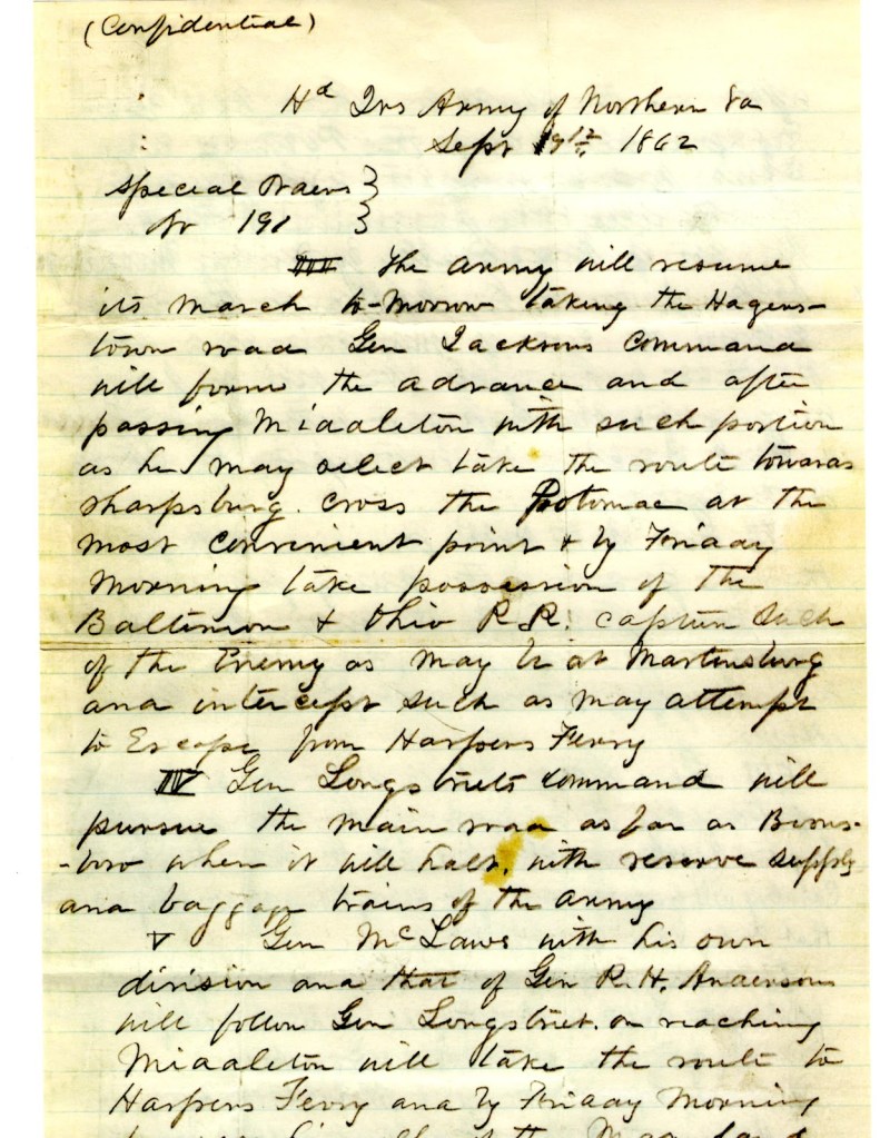 “General Robert E. Lee’s ‘Lost Order’ No. 191.” American Battlefield Trust. https://www.battlefields.org/learn/primary-sources/general-robert-e-lees-lost-order-no-191.